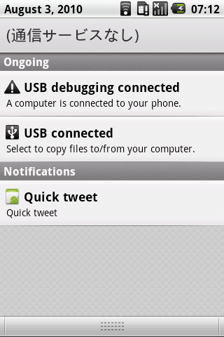MyStateBar 価格:100円 ・Android Marketからダウンロードする 通知バーから、WiFi・Bluetooth・GPS・マナーモード・バイブレーションのON/OFFの状態の確認、ON/OFFの切り替え、アプリケーションの起動ができるアプリケーションです。 電源投入時に常駐します。
