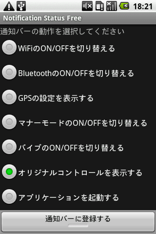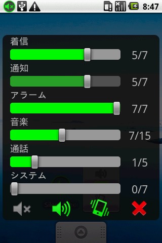 ** その他の機能 **●オリジナルコントロール ステータスバーから起動すると現在の音量変更やサービスのON/OFFの切り替えができます。 ** 動作環境 ** Android OS 1.5以上 ** スクリーンショット ** |