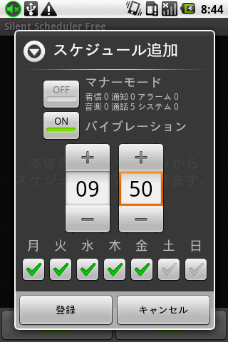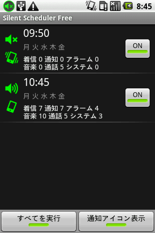 Sakura Softよく会社と間違えられますが、個人的な趣味でAndroidアプリを作成してます。2010.10.16 Sat 07:24:50 QuickToTweetQuickToTweet 価格:無料 ・Android Marketからダウンロードする QuickToTweet は、ツイートのみ行えるシンプルなtwitterクライアントです。 ** その他の機能 ** ●認証 ●ステータスバー登録 ステータスバーからツイート画面をすばやく表示できます。 ** 動作環境 ** Android OS 1.5以上(HT-03Aにて動作確認しています) ** スクリーンショット ** PR 2010.09.23 Thu 08:57:09 Silent SchedulerSilent Scheduler Free 価格:無料 (有料版と機能に違いはありませんが、広告が表示されます) ・Android Marketからダウンロードする Silent Scheduler 価格:100円 ・Android Marketからダウンロードする Silent Scheduler は、音量とバイブレーションを時間と曜日で自動切り換するアプリケーションです。 本体がスリープ状態でも動作します。 ** お知らせ ** ▼オクトバにレビューしていただきました。(v1.1.9) http://octoba.net/archives/20100913-silent-scheduler-android-949.html ▼アンドロイダーにレビューしていただきました。(v1.1.6) http://androider.jp/?p=15638 ** その他の機能 ** ●サウンドコントロール ステータスバーから起動すると現在の音量変更ができます。 ●ボリュームウィジェット マナーモードとバイブレーションの切り替えがホーム画面で行えます。 ●ステータスバー音量表示 6段階で現在の音量をステータスバーから確認できます。 ** 動作環境 ** Android OS 1.6以上(HT-03Aにて動作確認しています) ** スクリーンショット ** 2010.09.16 Thu 01:44:36 MyStateBarMyStateBar Free